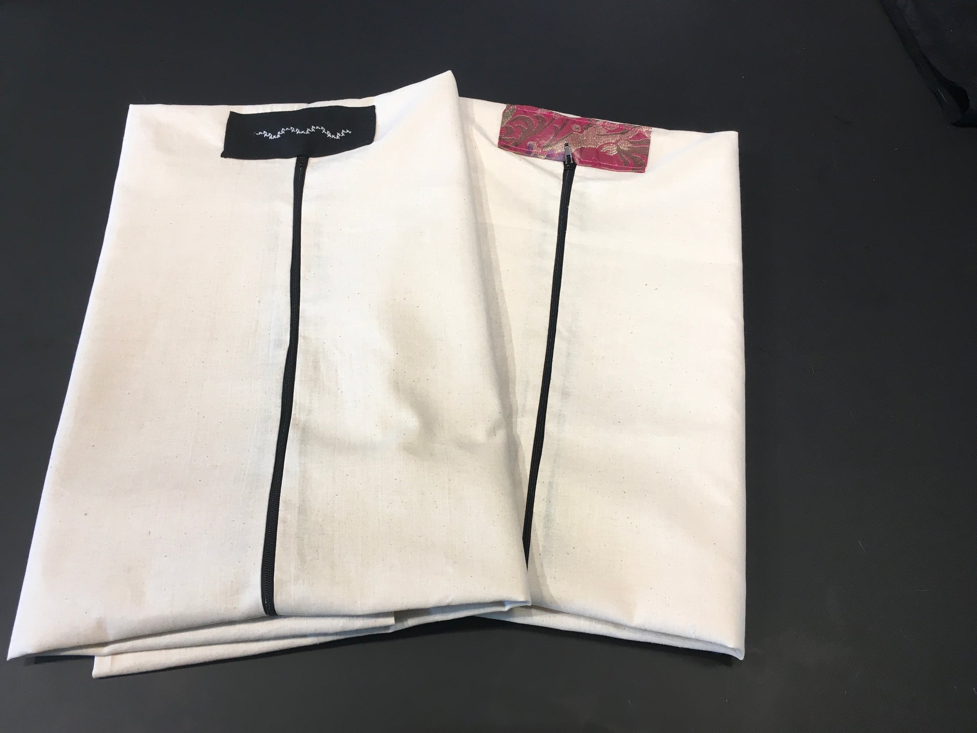 Anbefaling å ha bunaden i en pose for å skåne den når den ikke brukes. Bunadsposene jeg syr, er i bomullslerret og med glidelås. Det er hull øverst til hengeren. Posene er 150 cm lang.
