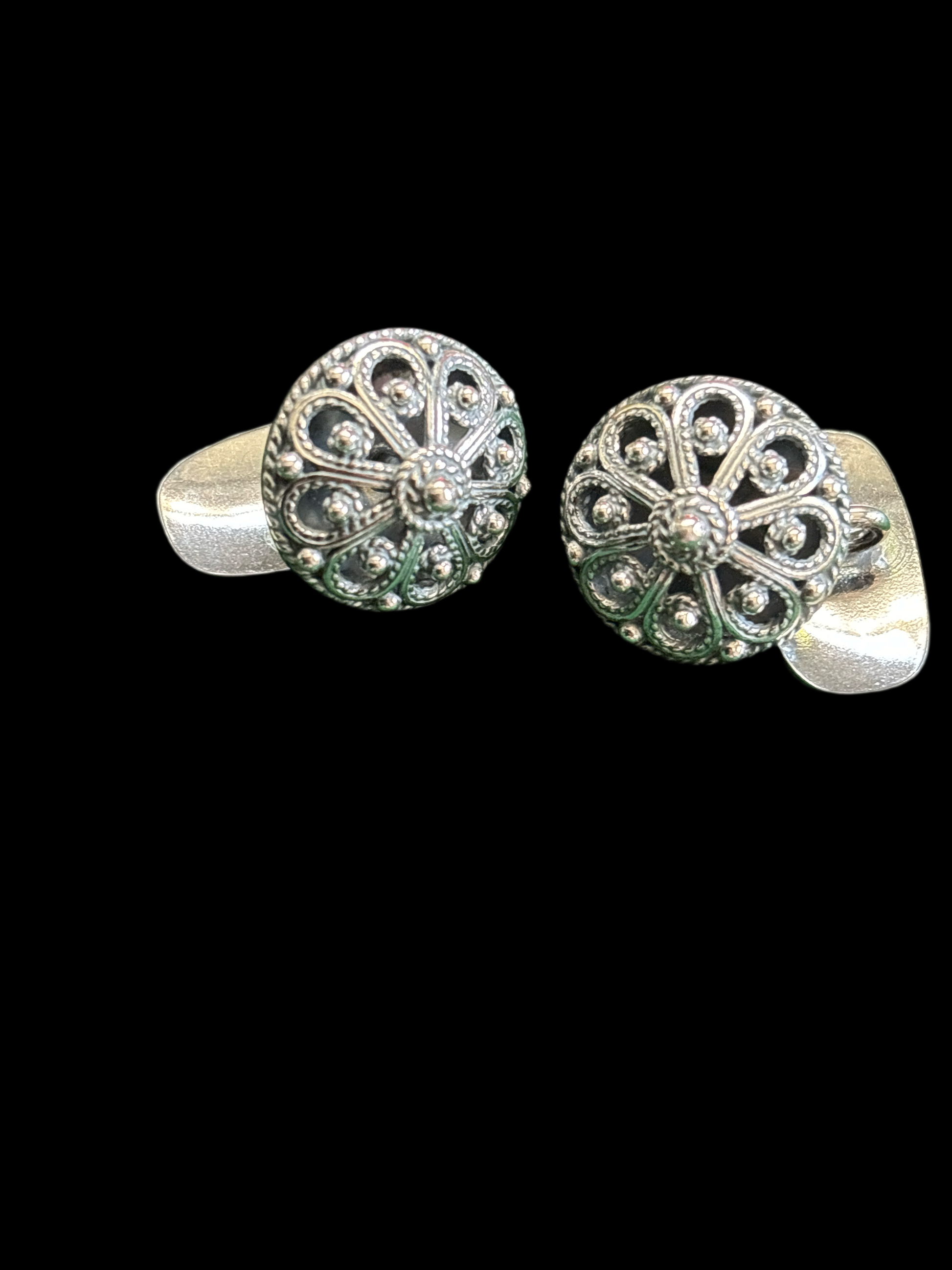 Mansjettene er laget i samme utsøkte design som søljene, noe som skaper en helhetlig og elegant stil for beltestakken. Designet i oksidert sølv, delikate mønstrene som gir mansjettene et unikt preg, perfekt for den som ønsker et gjennomført tradisjon og sofistikert uttrykk til beltestakken.