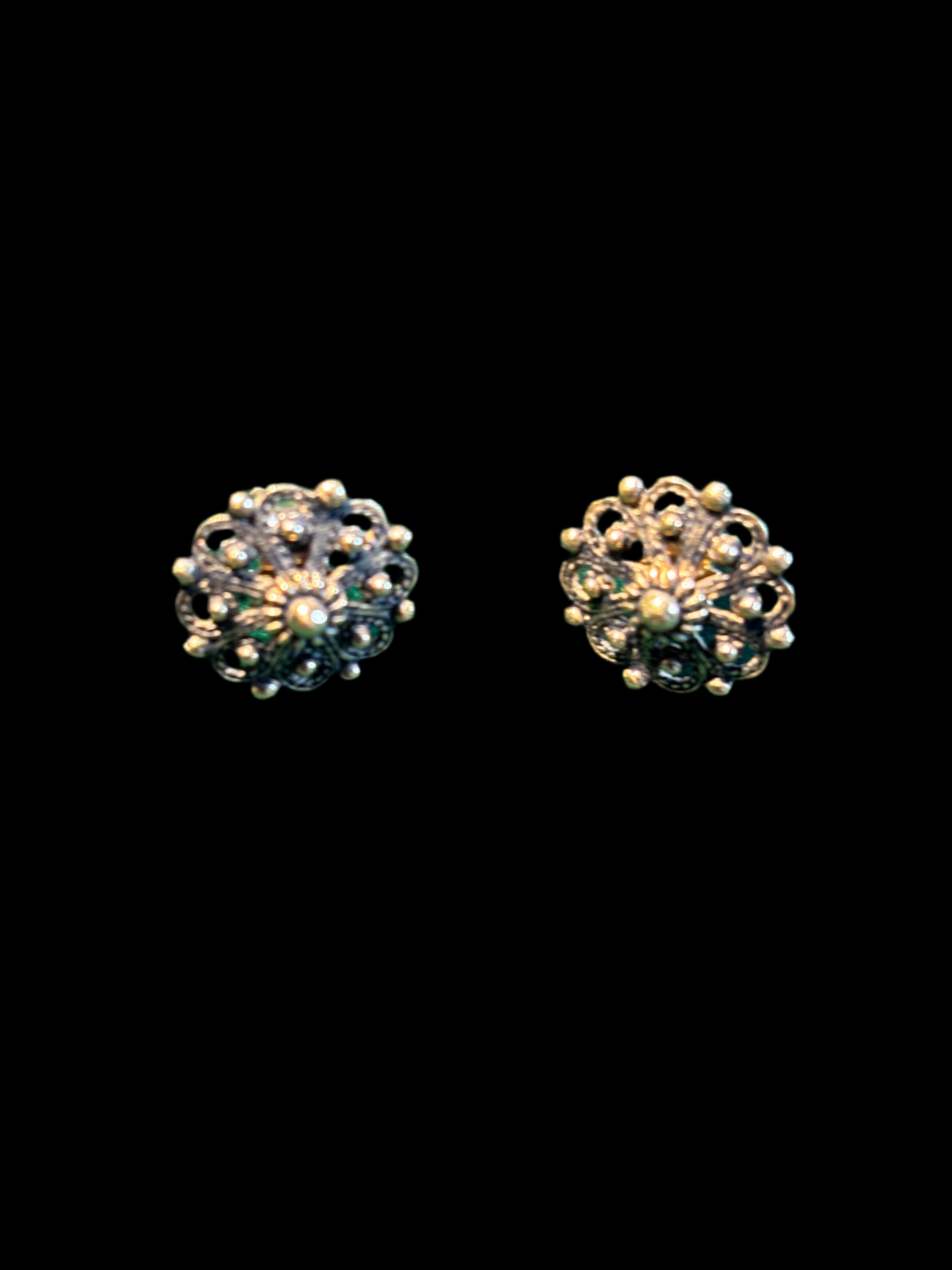 Disse øredobbene er nøye designet for å komplementere søljene som pryder beltestakken. Hvert par er håndlaget med samme omsorg og presisjon, og de reflekterer de rike, tradisjonelle mønstre og materialer som er kjent fra norsk folkedrakt. Øredobbene er laget i antikkgylt sølv med detaljer som harmonisering med søljenes utsøkte design, og sammen skaper de et elegante og perfekte uttrykk