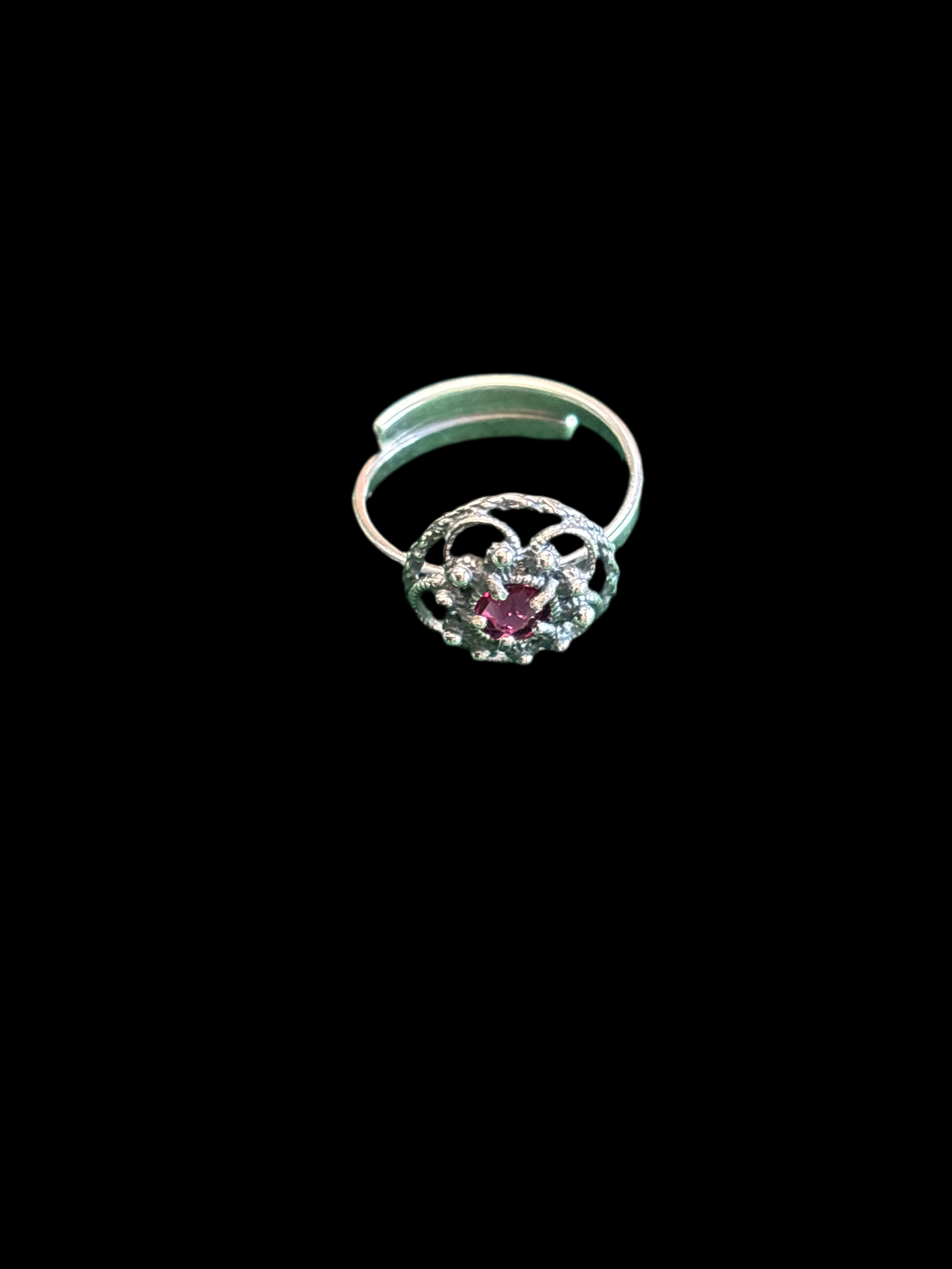 Denne vakre oksiderte sølvringen med en delikat rosa stein kombinert med det rustikke uttrykket av oksidert sølv med en frisk fargepalett. Ringen er justerbar, noe som sikrer et perfekt passform for alle.