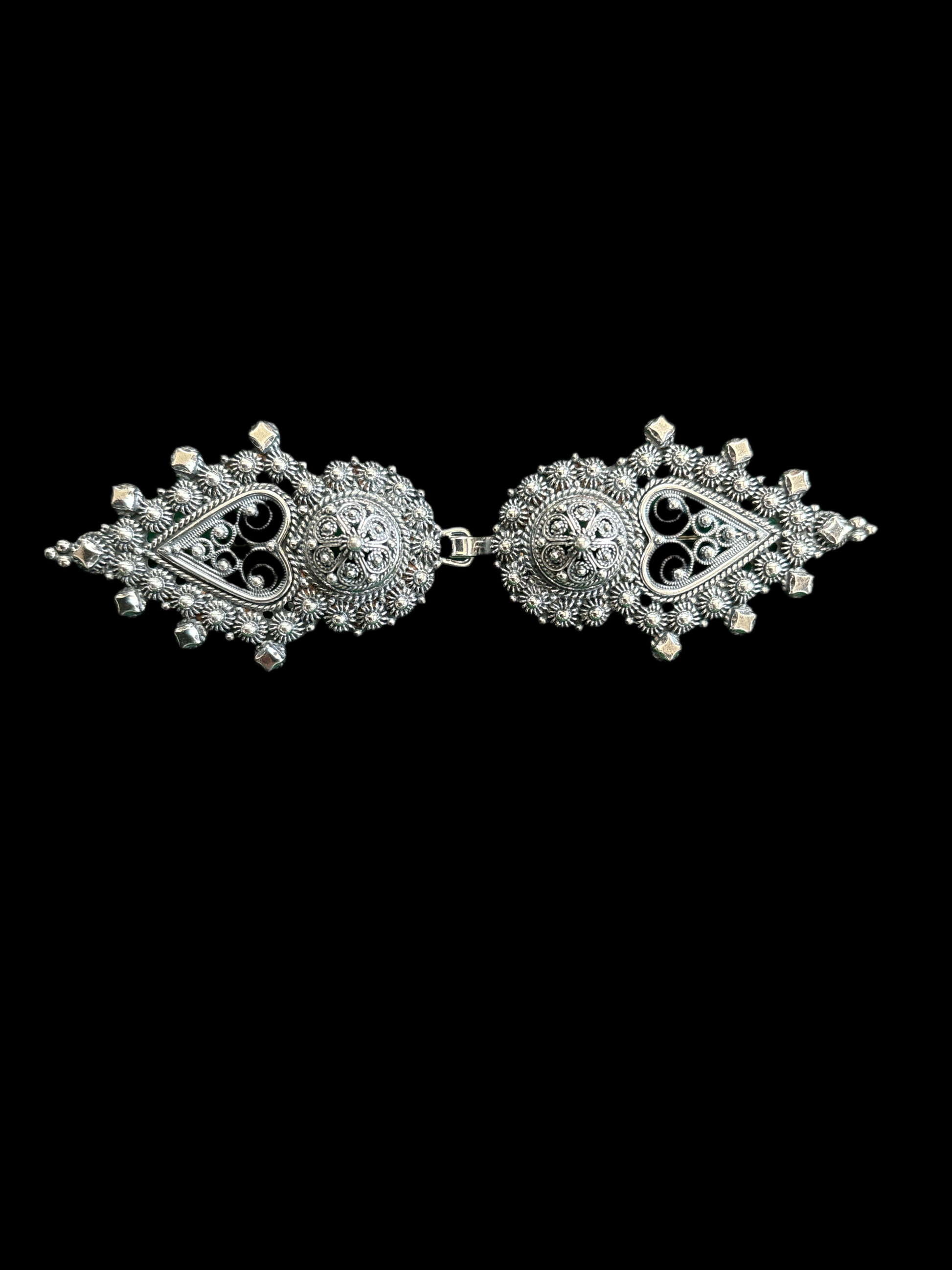 Denne vakre spennen er designet i en tradisjonell stil, spesielt tilpasset beltet til beltestakk. Den er utført i oksidert sølv, som gir en autentisk og tidløs glans. Spennen er både et funksjonelt og dekorativt element, og tilfører et historisk preg til beltestakken din. Perfekt for deg som ønsker å bevare norske kulturtradisjoner.