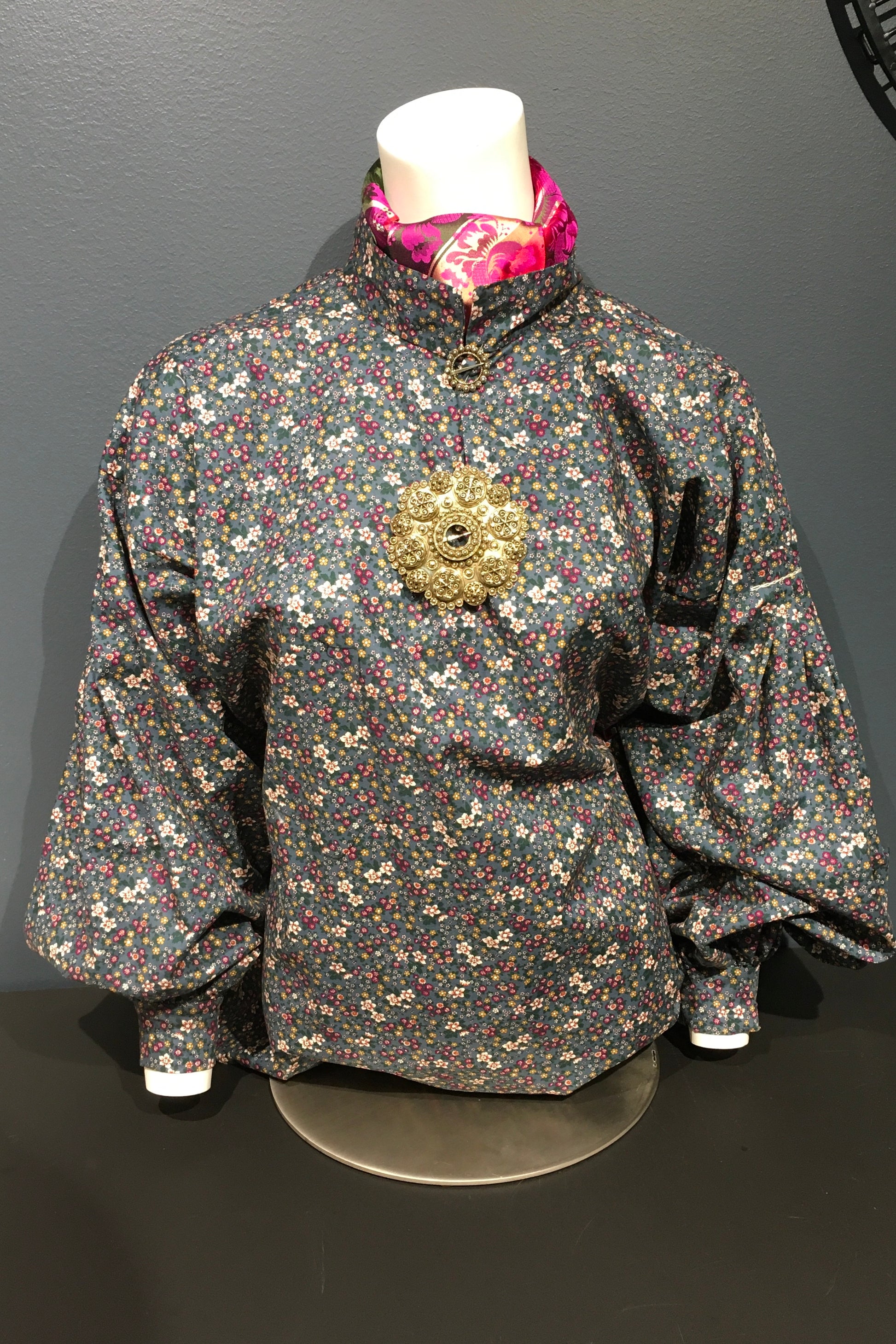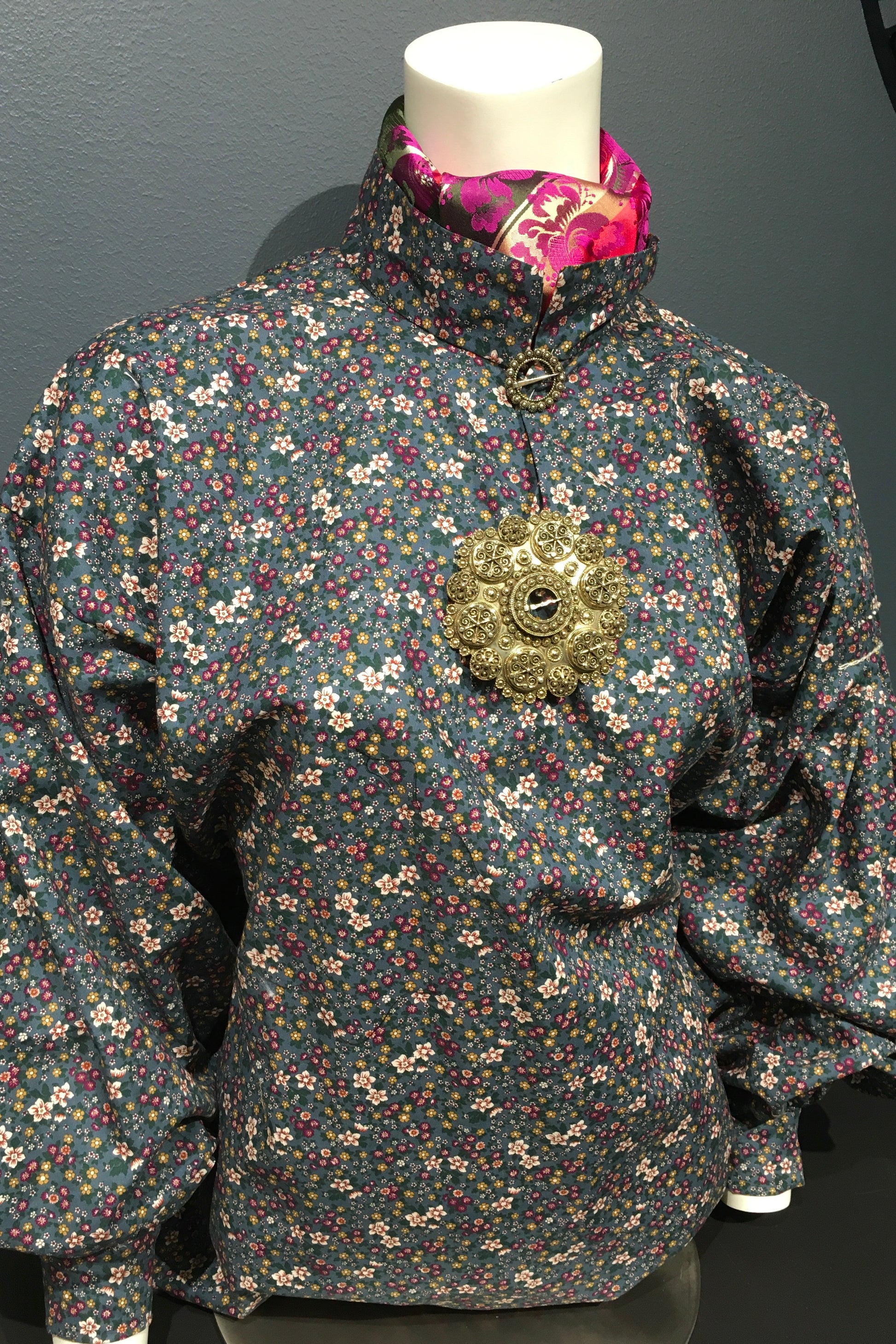 Denne skjorten har et tradisjonelt design med moderne komfort. De karakteristiske foldene, delikate franske knutene og kjedesting som er utført for hånd og gir skjorten og tradisjonelt uttrykk. Dette er en bunadskjorte i bomull, behagelig å ha på seg på varme dager.