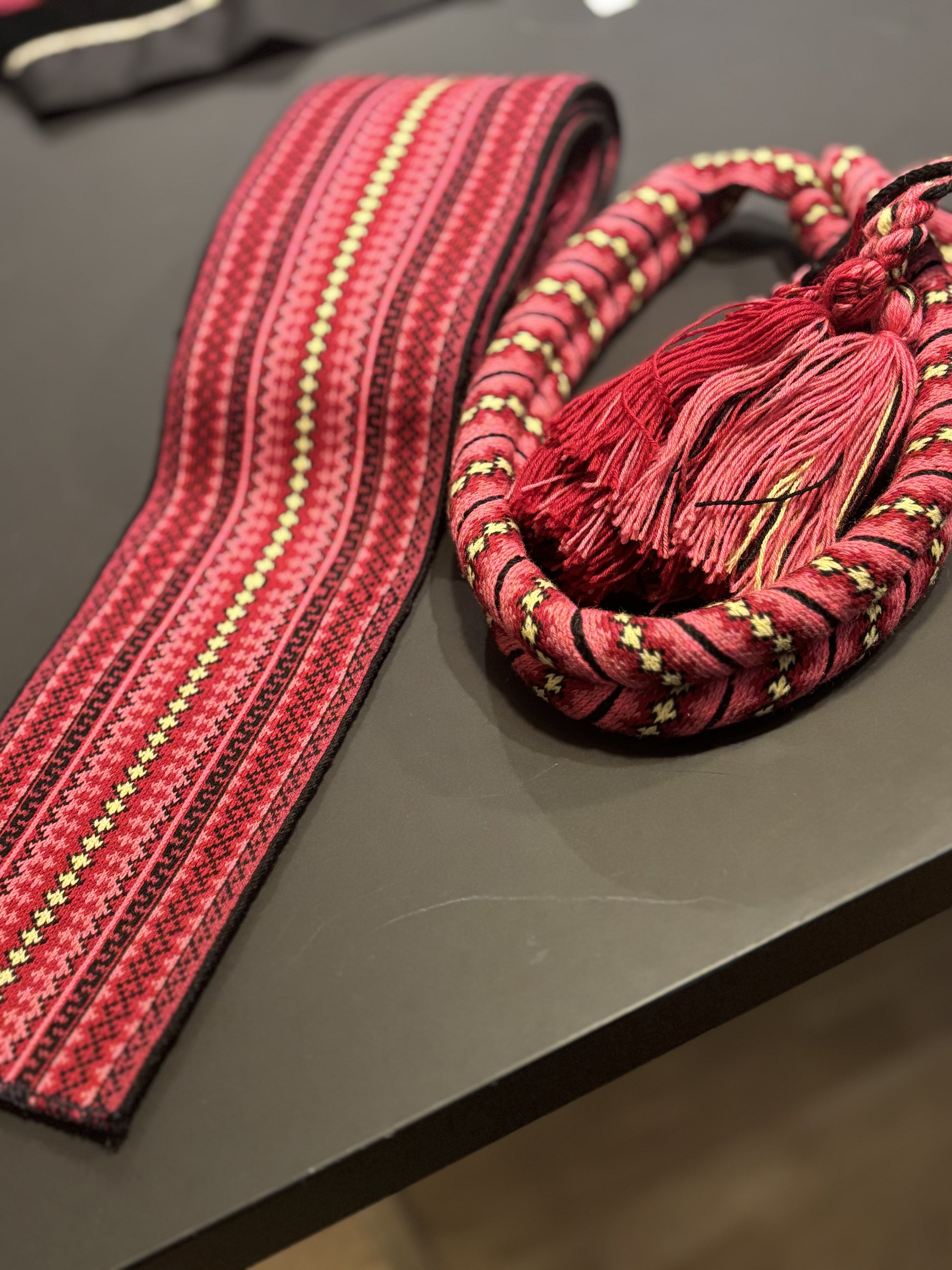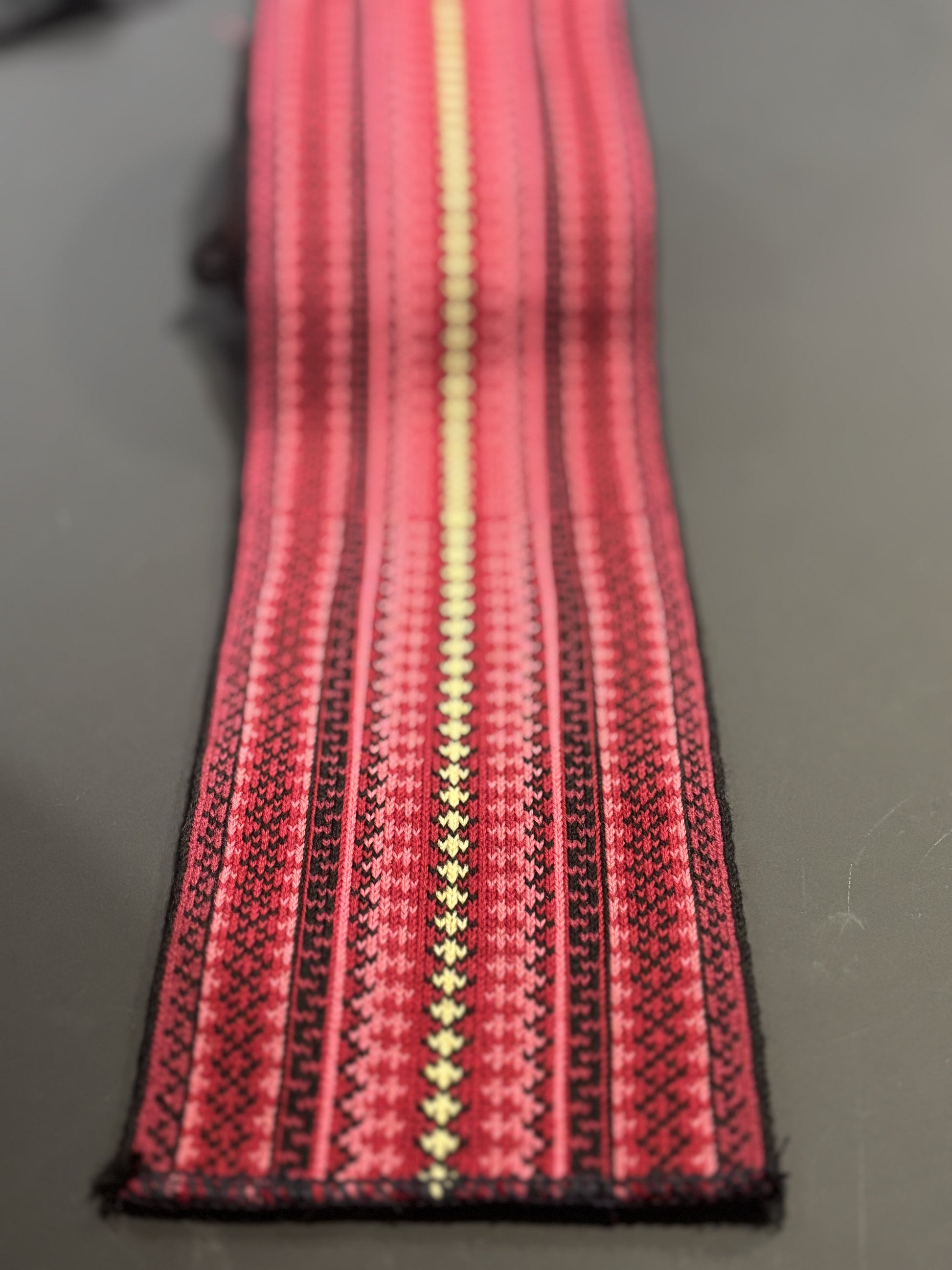 Vevd belte 195 cm langt og 11 cm bredt. Har også vippe til dette belte